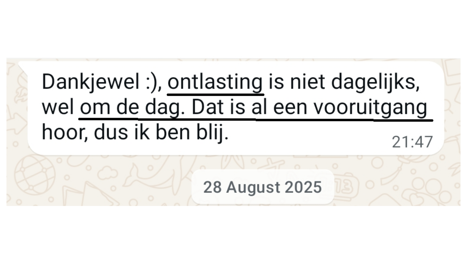 Ik begrijp je. Ik was zelf ook sceptisch in het begin, vooral omdat ik geen ingewikkelde uitleg of moeilijke theorieën wilde. Daarom praten we in deze minisessie niet in medische of abstracte termen.